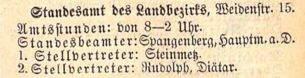 Das Standesamt Breslau-Land befand sich in der Weidenstr. 15 in Breslau (heute Wierzbowa 15 Wroclaw).