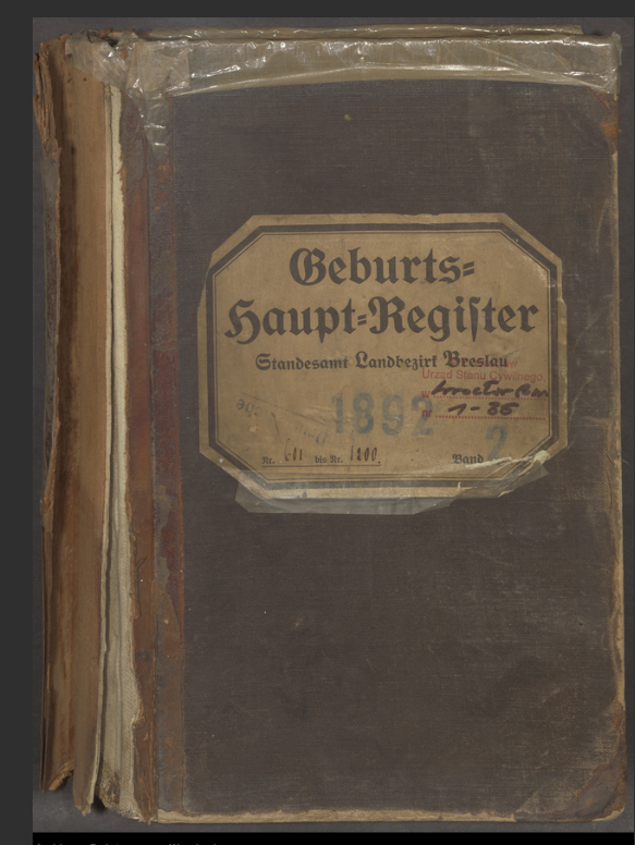Das „Geburts-Haupt-Register Standesamt Landbezirk Breslau“ für 1892