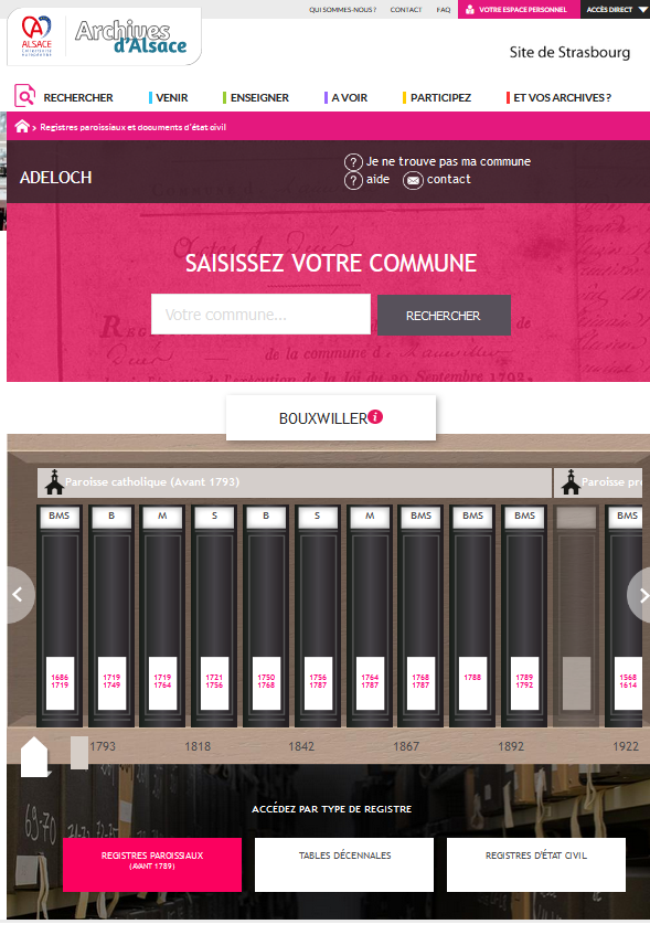 Beispiel: Archiv Straßbourg als eine von vielen weiteren Recherchemöglichkeiten